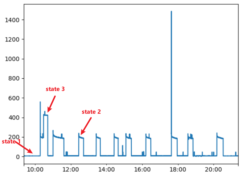 Use KMeans clustering to find states [ 0 (OFF), 193 (ON), 426 (ON)]